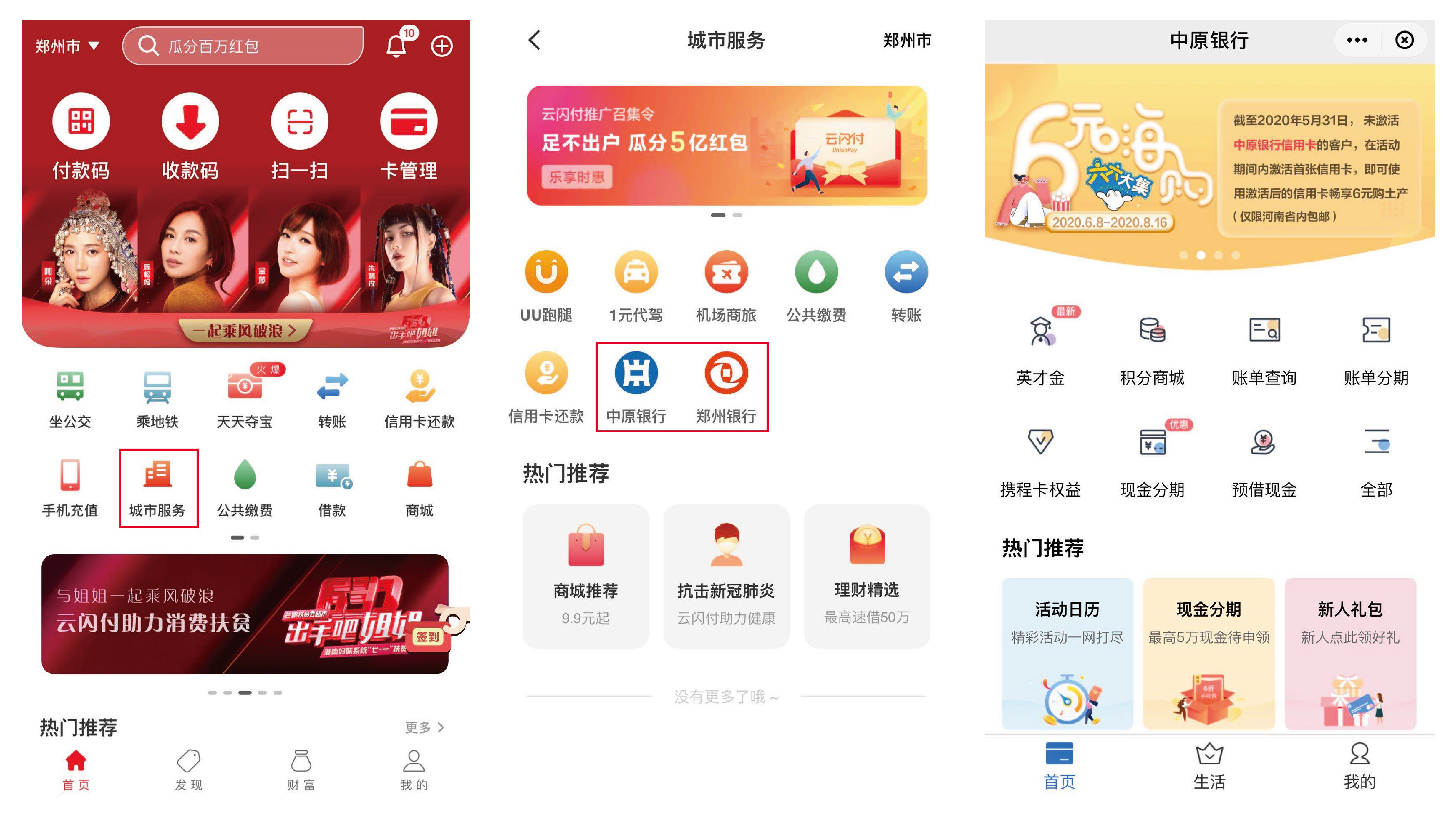 近日,中原银行在云闪付APP中上线了全国首家自主开发的“云闪付分行”——“中原银行信用卡”小程序,内容多元化,实现了信用卡功能服务的全覆盖。河南用户点击云闪付APP首页的“城市服务”,进入“中原银行”云闪付分行,即可享受银联与银行共同提供的信用卡申请、积分商城、账单查询、账单分期、预借现金、本地优惠、高端权益等23项金融和支付服务,为用户管理信用卡提供便捷周到的一站式综合服务。同时,郑州银行也在云闪付APP中上线了“在线申卡”小程序,用户可通过该小程序快速申请郑州银行的7款信用卡,后期该项服务也将进一步升级为“云闪付分行”。