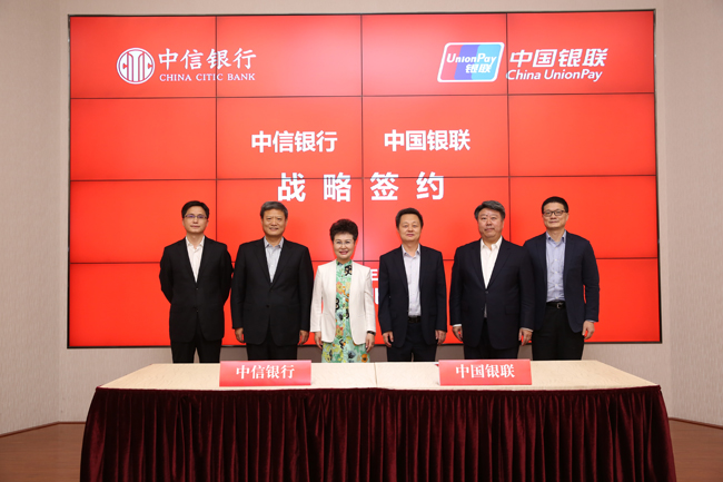 7月11日,中国银联与中信银行在北京达成全面战略合作,在银联董事长、党委书记邵伏军与中信银行董事长、党委书记李庆萍的见证下,银联常务副总裁蔡剑波、中信银行副行长杨毓代表双方签署协议。