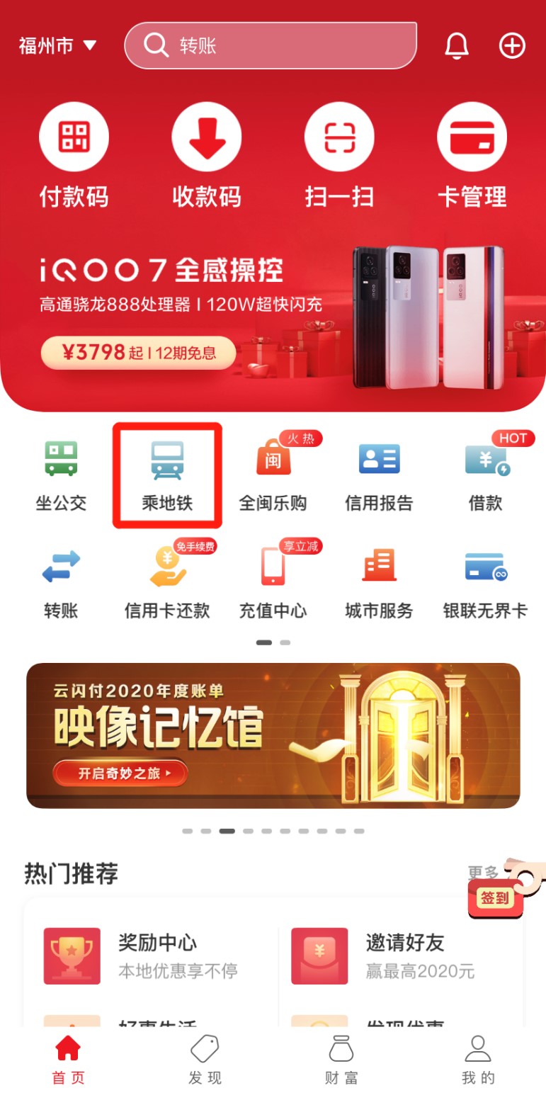 即日起,市民和游客打开云闪付APP定位福州,选择“乘地铁”,即可在福州地铁已开通的1号线、2号线的47个站点扫二维码进站乘车。银联将整合行业资源,实现福州公交、地铁“一码通行”,进一步提高用户的出行体验。