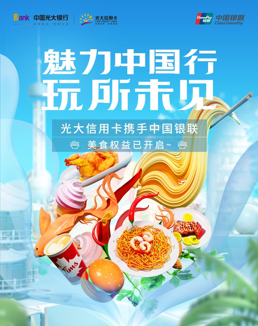 “魅力中国行”是光大信用卡中心牵头打造的集团名品项目,上线以来受到各方认可。此次与银联在目的地城市有代表性或热门网红属性的商圈、市集或特色商户中开展联合营销,将开启美食地标新风尚,助力光大特色商户体系建设,持续惠及广大持卡人。