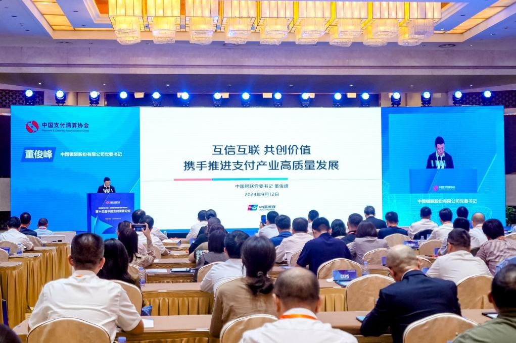 9月12日,第十三届中国支付清算论坛在北京召开。本次论坛由中国清算支付协会主办,主题为“构建兼容共生、协同发展的支付服务体系”。中国银联党委书记董俊峰应邀出席,发表题为《互信互联 共创价值 携手推进支付产业高质量发展》的主题演讲。