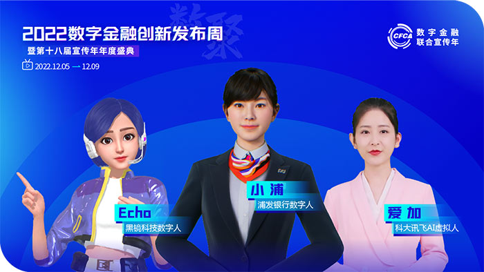 本次创新发布周活动由浦发银行「小浦」、科大讯飞「爱加」、黑镜科技「Echo」等三位数字人主持。