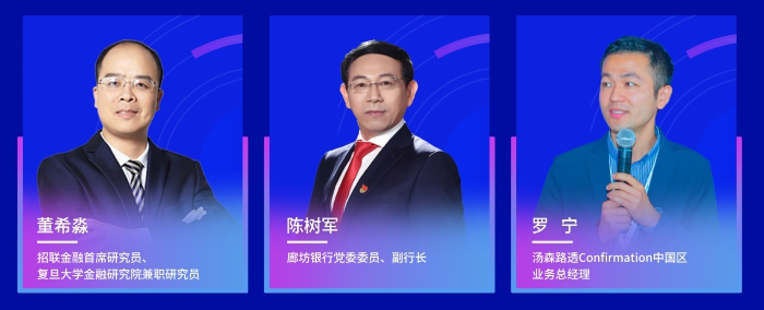 创新发布周活动第五天,招联金融首席研究员、复旦大学金融研究院兼职研究员董希淼,廊坊银行党委委员、副行长陈树军,汤森路透Confirmation中国区业务总经理罗宁三位嘉宾从新兴技术应用的现状和未来展开了分析和研究,并就金融机构“走出去”战略做了探讨。