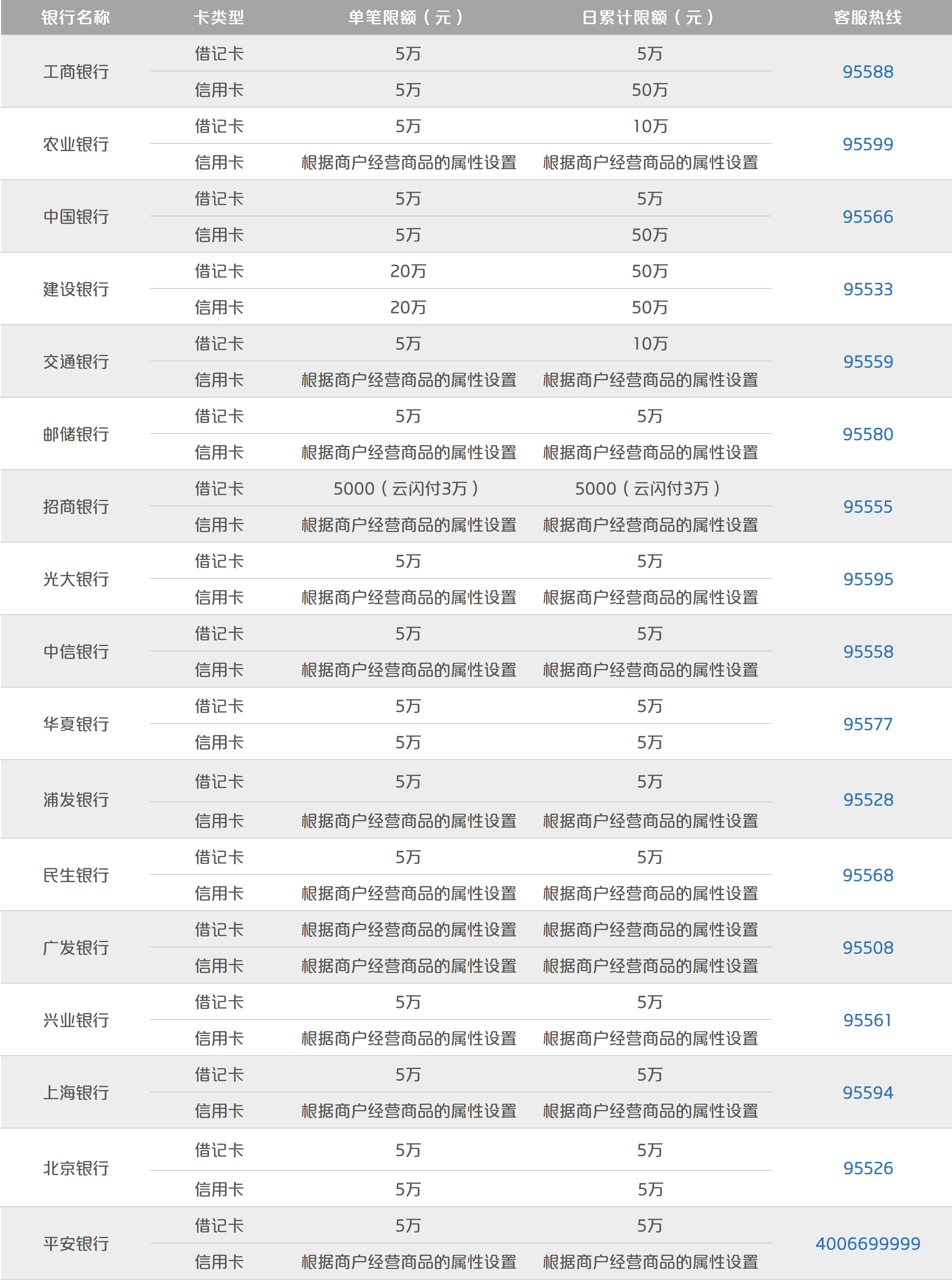 具体情况会根据商户不同、用户在银行侧的设置不同而有所差异,以商户提示或银行实际限额为准。