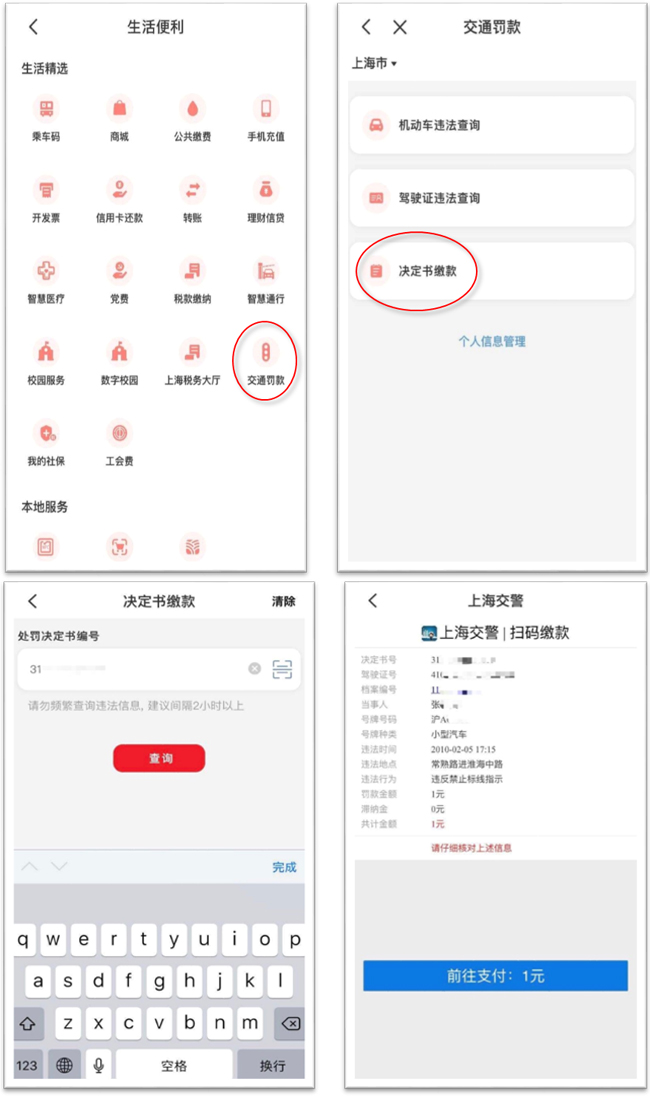 交通处罚决定书查询缴款使用示意(上海、山西均已开通)